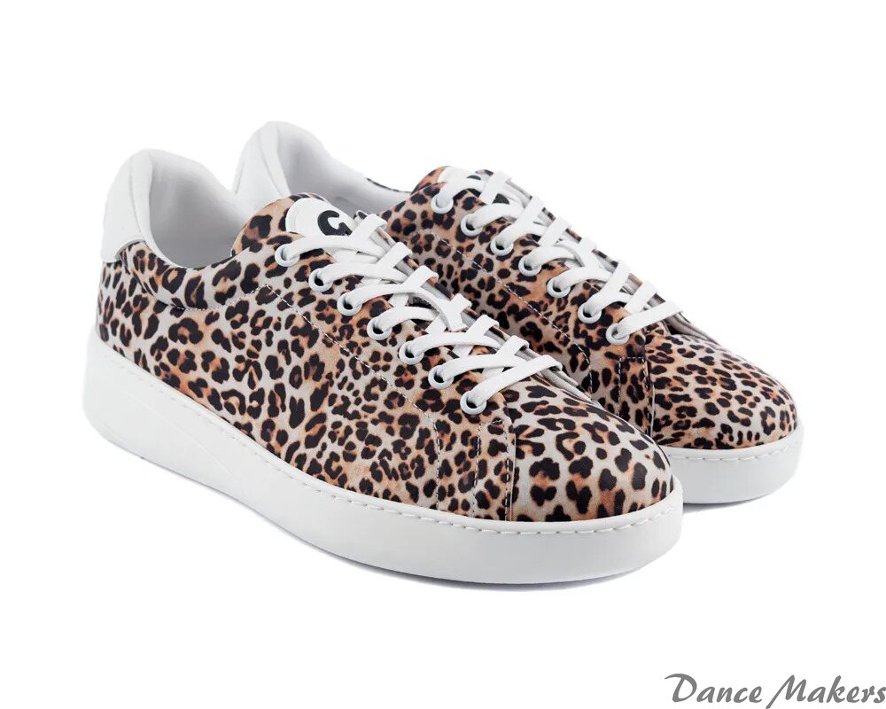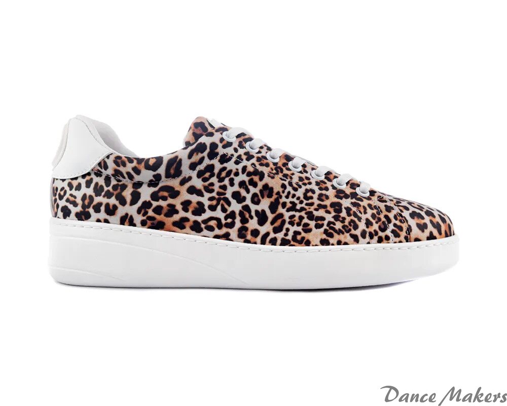 Nämä tyylikkäät leopardikuvioiset tanssilenkkarit ovat täydelliset kumppanit kesän tansseihin! Ulkokäyttöön soveltuva pohja takaa, että voit tanssia erilaisilla alustoilla huoletta.
