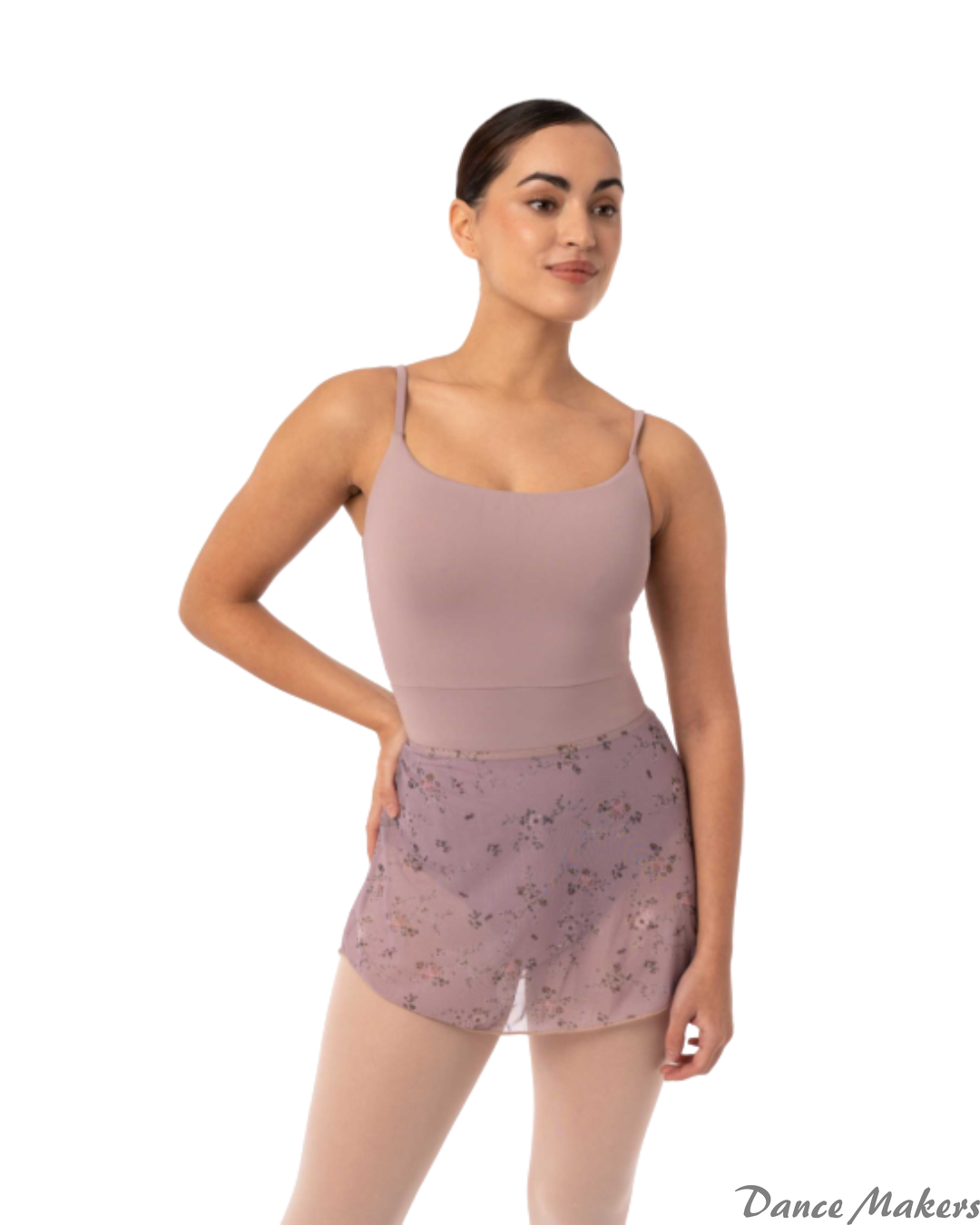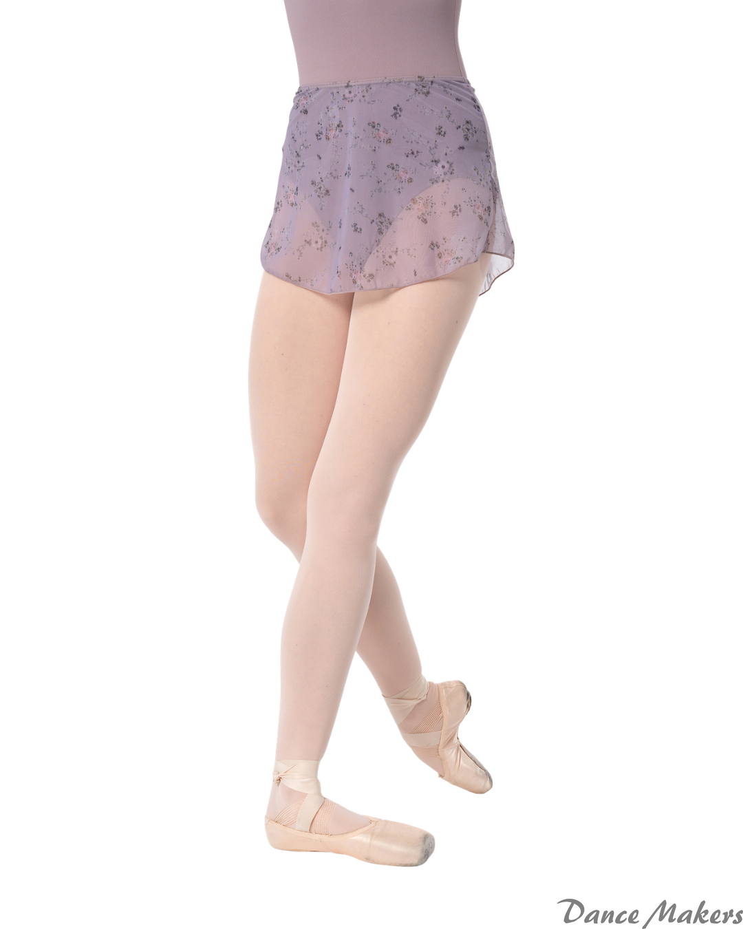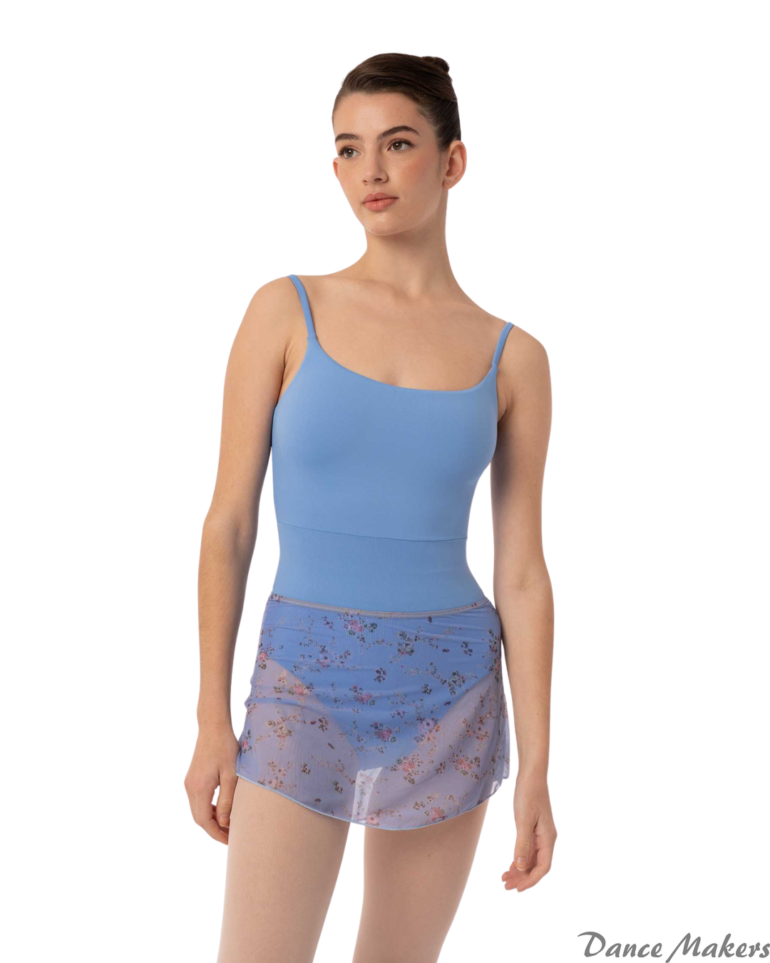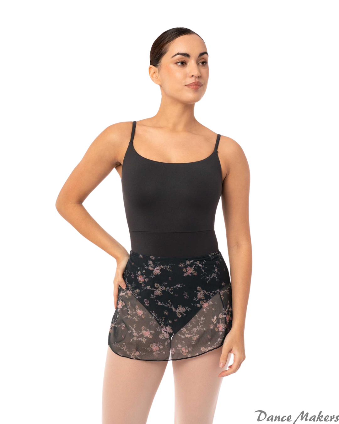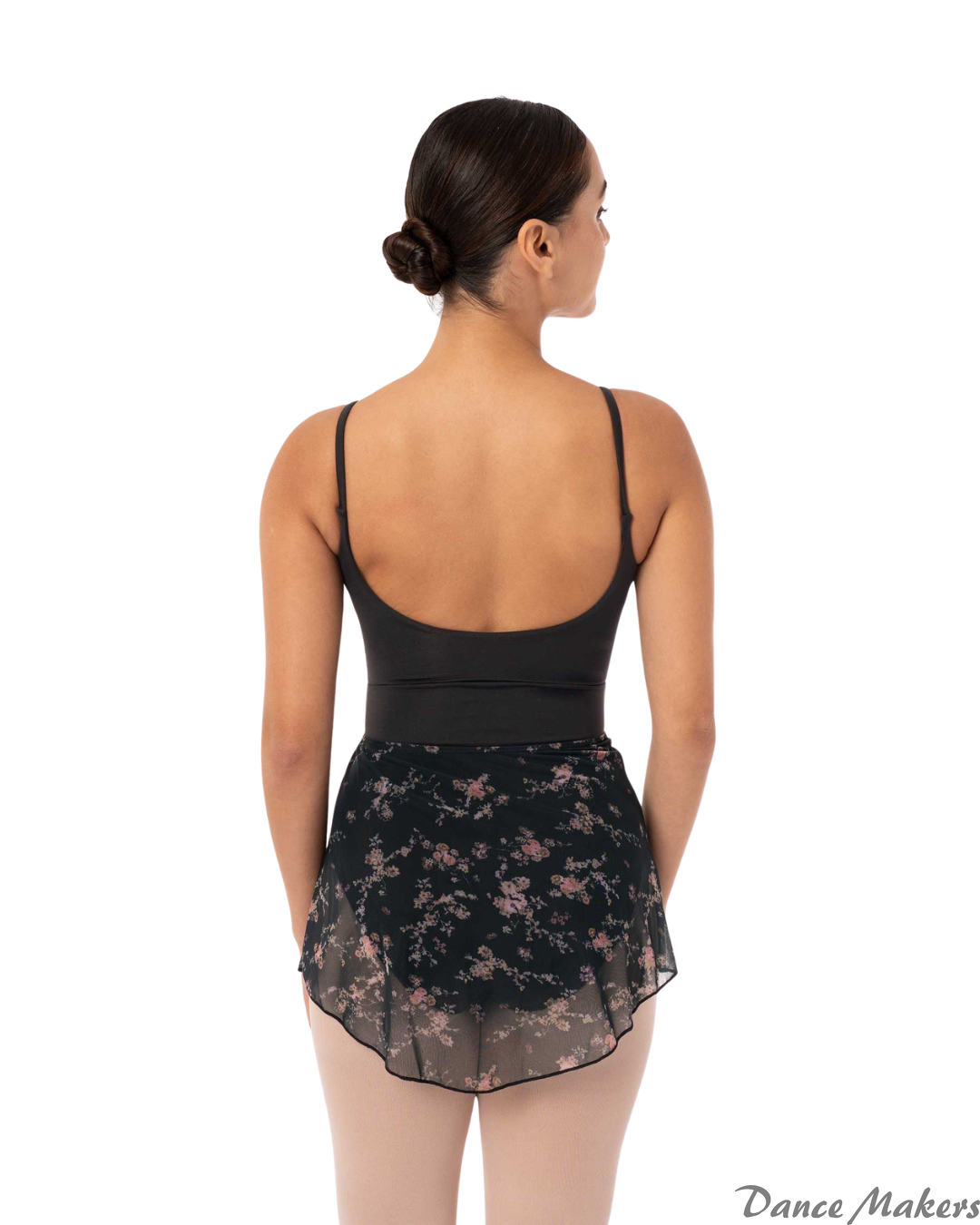 Flor floral tulle skirt. This lightweight and airy skirt pairs perfectly with your ballet leotards. The floral printed tulle and elastic waistband provide comfort and freedom of movement while maintaining a romantic and delicate look. Ideal for ballet, contemporary dance, and rehearsals.